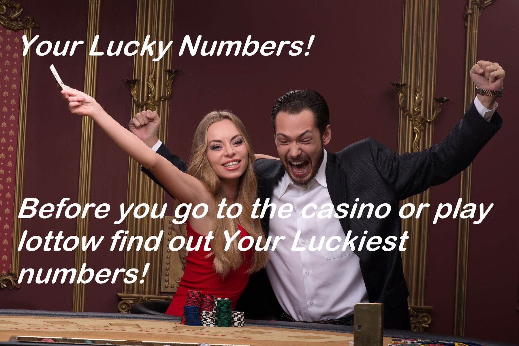 GOOD LUCK GAMBLING! Before you go to the casino or play lotto get a Boost of Good Luck and find out Your 3 Luckiest numbers!